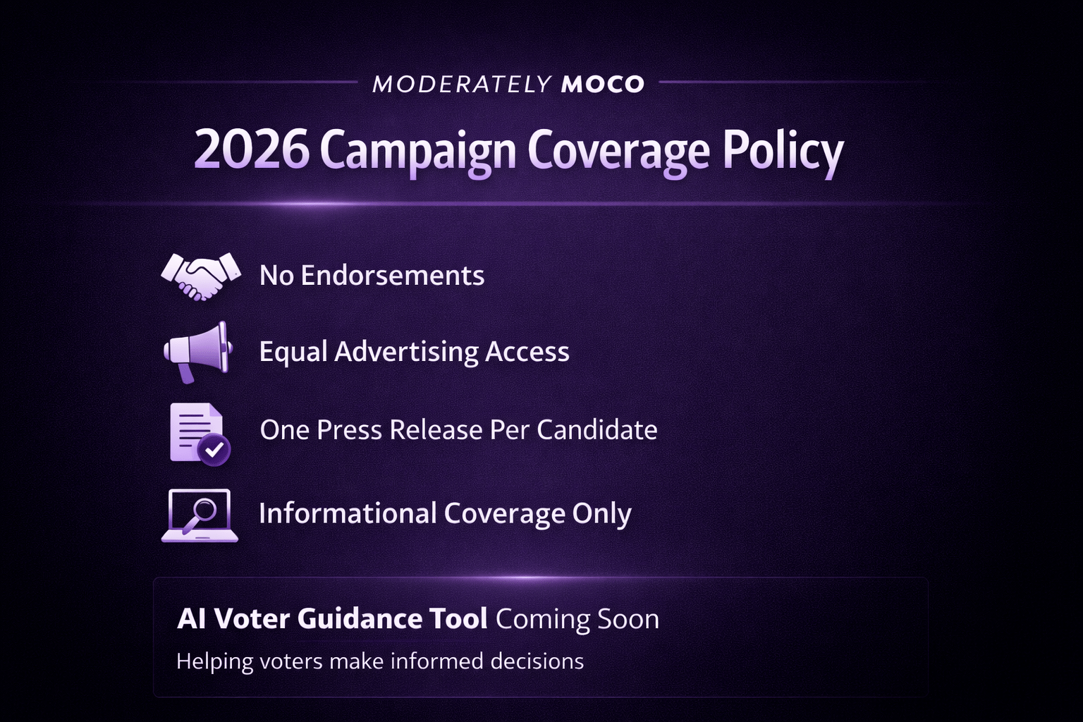 As the 2026 election season begins, Moderately MOCO is outlining our approach to campaign coverage to ensure transparency, fairness, and better access to information for Montgomery County voters and candidates alike.